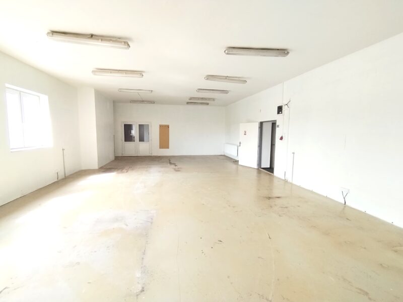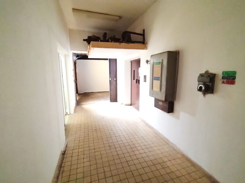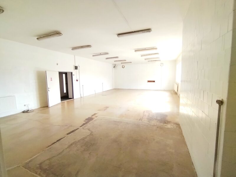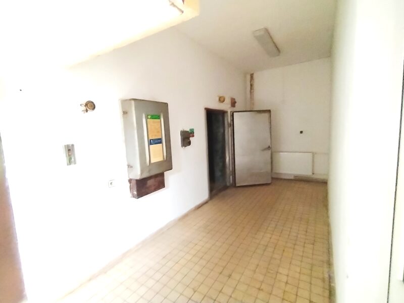 Největší místnost je pokryta dlažbou na podlaze a také na stěnách. K dispozici je také sklep jako úložný prostor, kde se dostanete nákladním výtahem, chodba a jedna menší místnost používaná v minulosti jako chladící box. U zadního vchodu máte k dispozici rampu a možnost parkování většího auta. Před domem parkování pro osobní auta. Penb g.